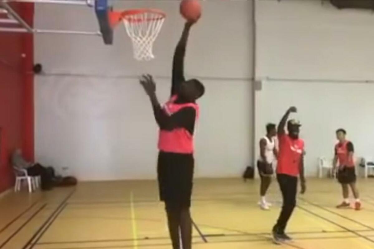 Na njemu se vidi tamnoputi košarkaš koji vežba u teretani sa trenerima tokom kampa za mlade talente u Dubaiju. Ništa neobično, da taj mladić nije pravi div!