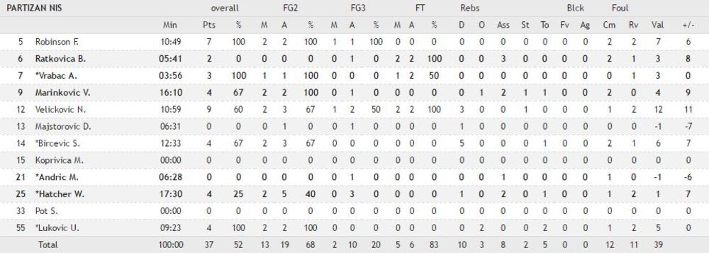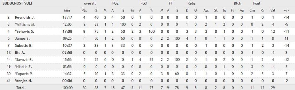 21:21 - Na kraju prve deonice Budućnost vodi sa 18:11. Najbolji pojedinci su Suad Šehović i Boris Savović sa pet poena, dok je kod domaćina najistaknutiji Marinković sa 4.