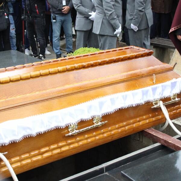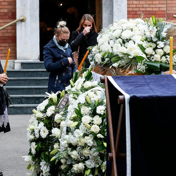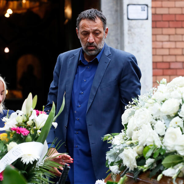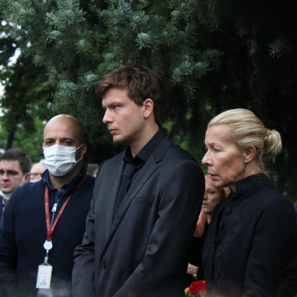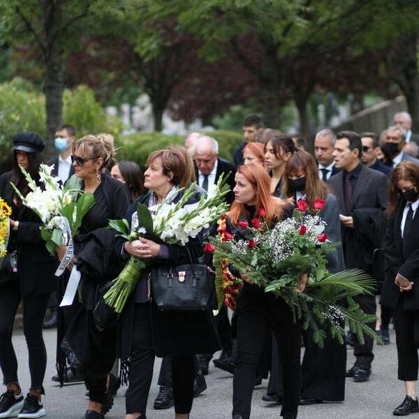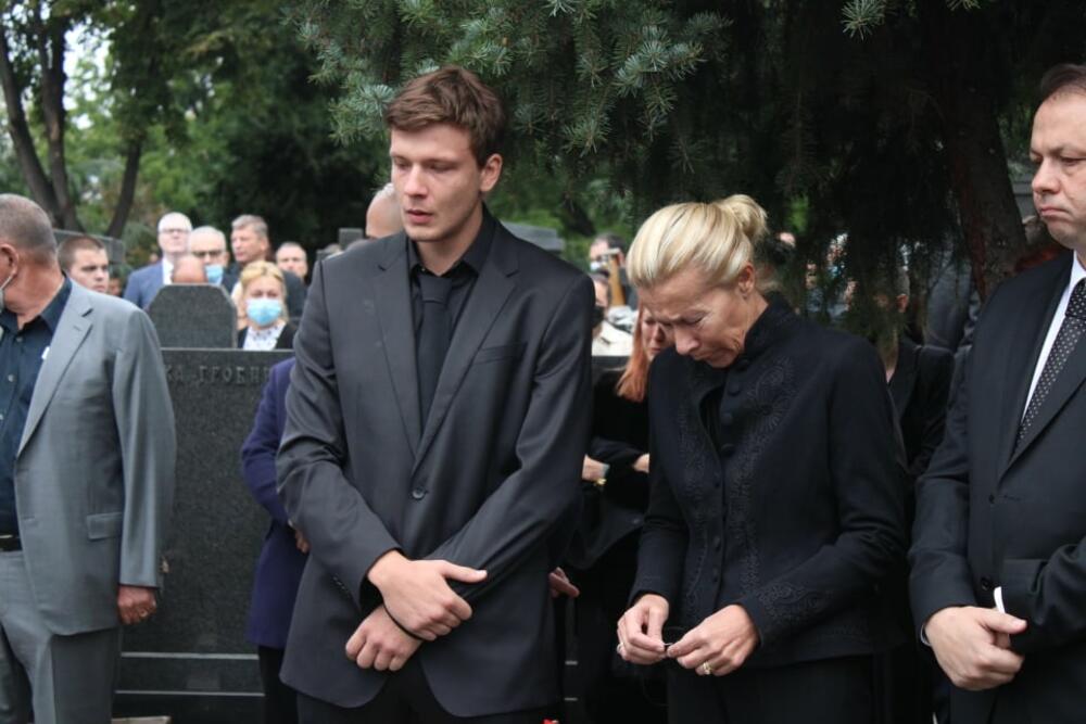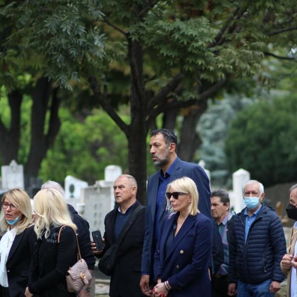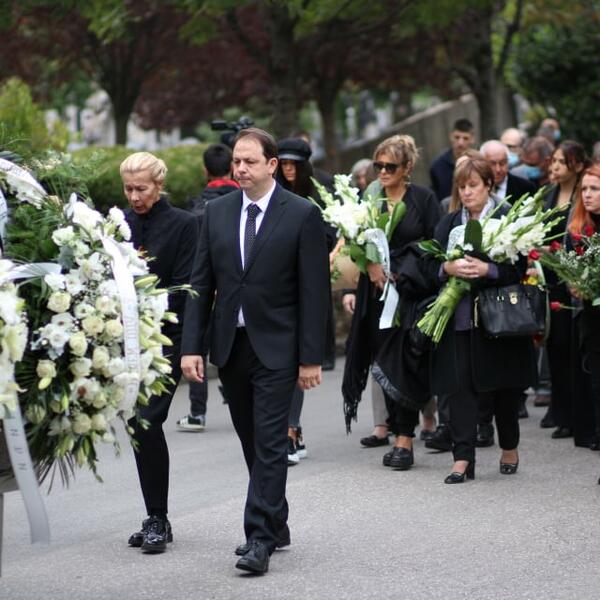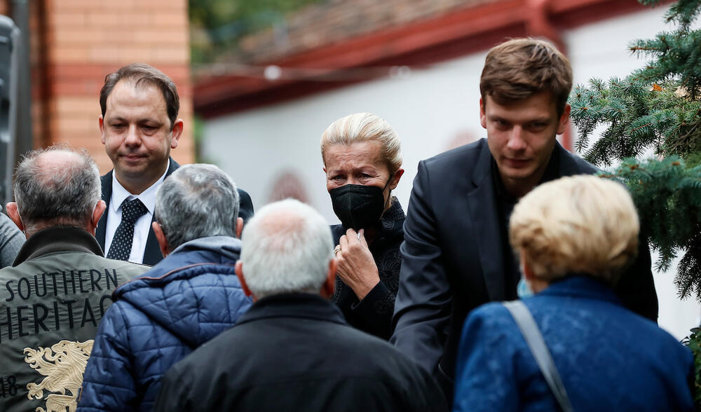 Supruga pokojnog Ivkovića, Nena, i njihov mlađi sin Pavle primaju saučešće od ljudi koji pristižu u sve većem broju.