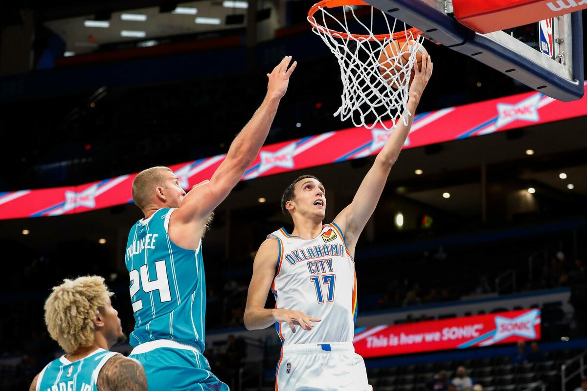 Aleksej Pokuševski je imao učinak od 11 poena, četiri skoka, jedne asistencije, dve ukradene i tri izgubljene lopte za Oklahomu u porazu kod kuće od Šarlota 97:113.