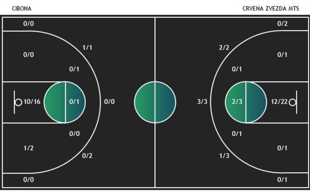 52:73 - I dalje se nastavlja dominacija crveno-belih. Cibona nikako nije uspela da priđe na više od 17, 18 poena.
