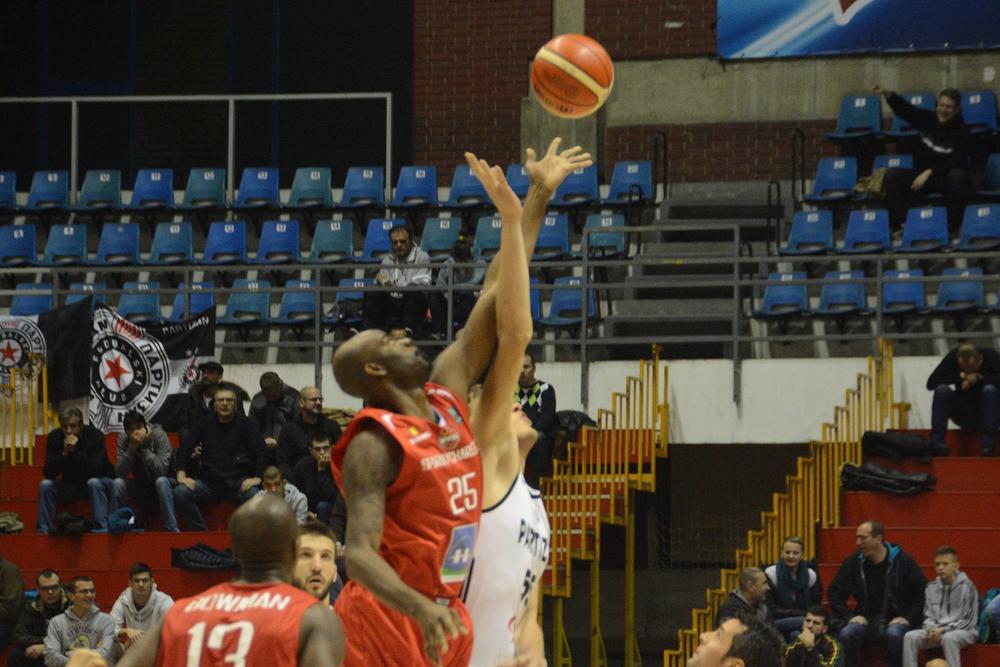 6. minut u Beogradu - Partizan ulazi u krizni period posle solidnog početka i već nekoliko napada ne uspeva da postigne koš, što koriste igrači Šarloa da preokrenu rezultat 12:8.