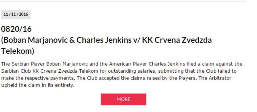 Naime, košarkaški arbitražni Sud FIBA na svom sajtu je objavio da je menadžer Čarlsa Dženkinsa i Bobana Marjanovića, Miško Ražnatović podneo tužbu protiv crveno-belih zbog zaostalih dugovanja!