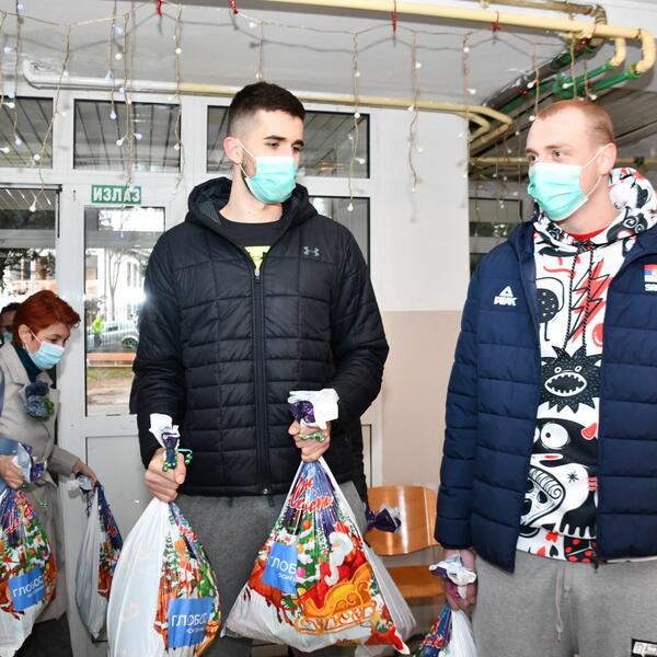 KOŠARKAŠI PARTIZANA OBRADOVALI MALIŠANE: Dušan i Alen delili paketiće deci bez roditeljskog staranja!