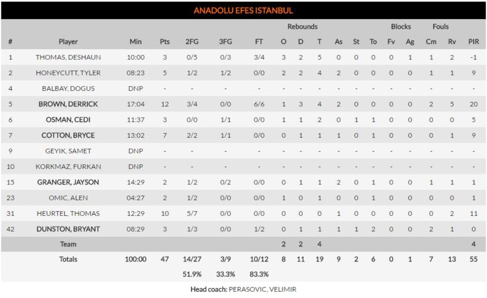 23:21 - Efes dolazi do prvih poena u drugoj deonici preko Kotona.
