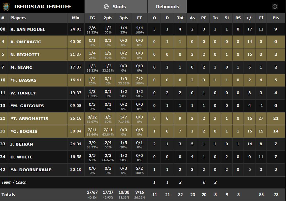 Kod domaćih Abromaitis je bio nerešiva enigma za Milojevićeve pulene i ostvario je učinak od 21 poena i 9 skokova, a pratio ga je Bogris sa 14.