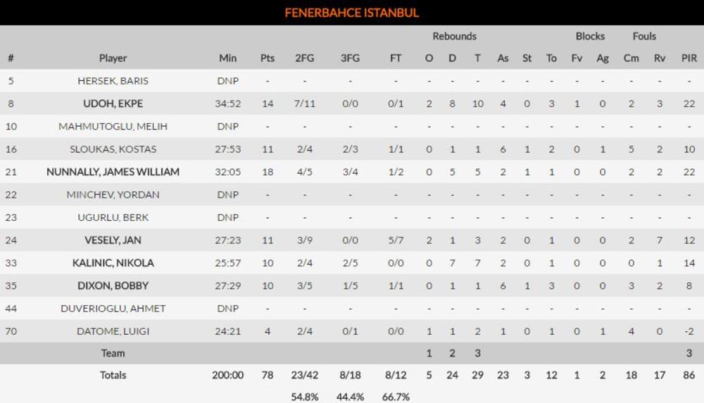 Najefikasniji pojedinac u pobendičkom timu bio je upravo Nanali sam 18 poena, dok je Ekpe Judo ubacio 14. Nikola Kalinić postigao je 10 poena i imao sedam skokova, dok Bogdan Bogdanović nije igrao zbog povrede.