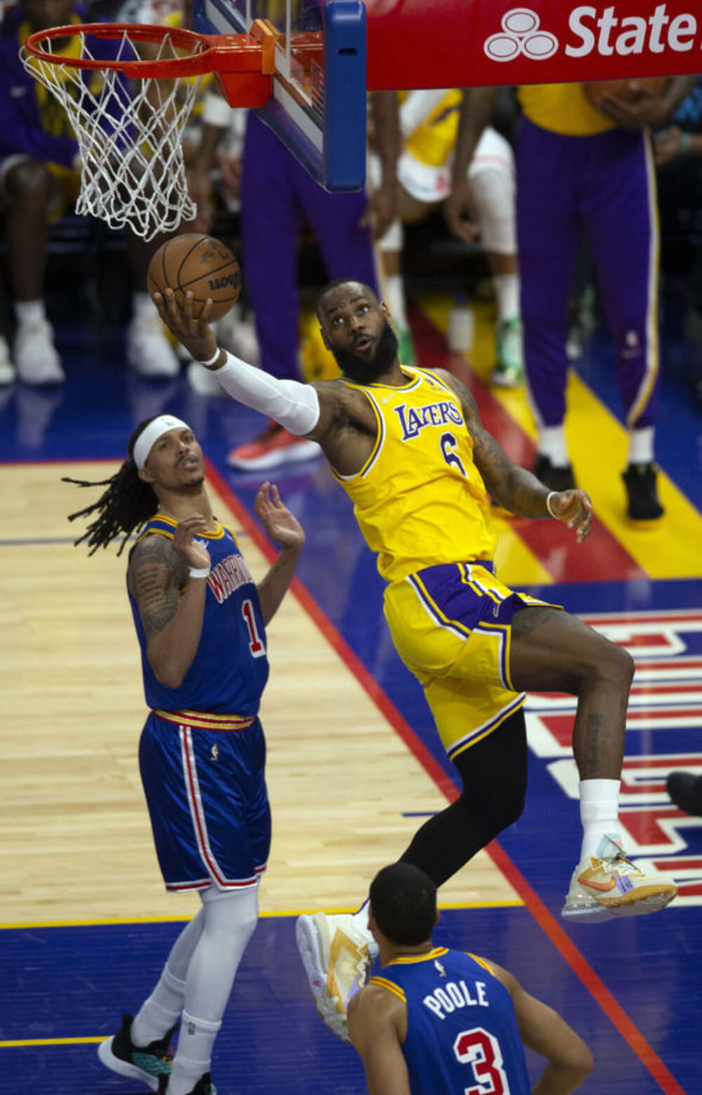 Lebron je poluvreme završio sa 18 poena šutem 7/12 čime je pomogao Lejkersima da drže priključak sa Voriorsima.
