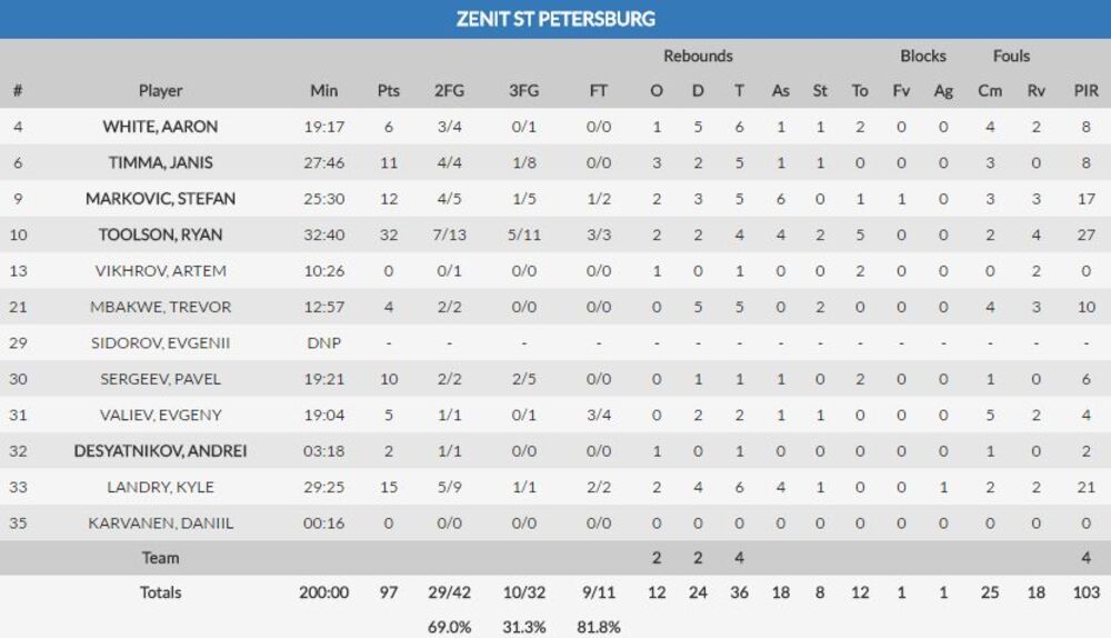 Najefikasniji akter utakmice bio je Rajan Tolson sa 32 poena.
