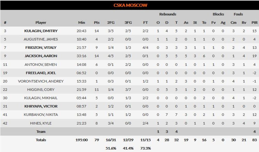 Najzaslužniji za pobedu ruske ekipe bili su Eron Džekson i Dmitri Kulagin sa 14 poena.