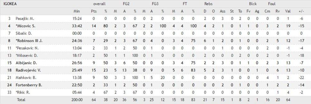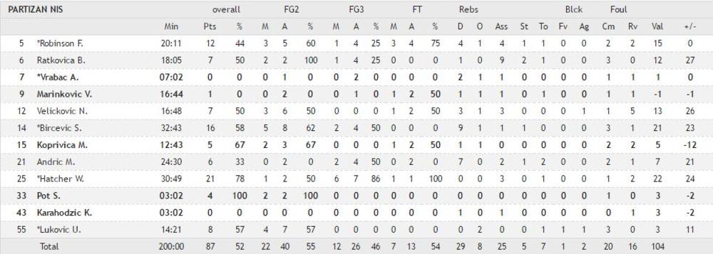 Najefikasniji u Partizanu bili su Hečer sa 21, odnosno Birčević sa 16 poena. Kod gostiju Vuk Radivojević ubacio je 15, a Micović 14.