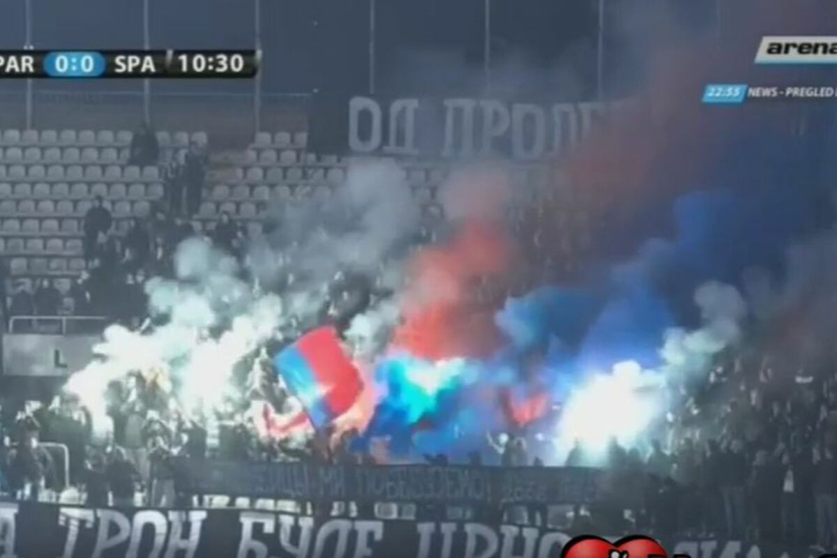 Oni su posle 10. minuta meča priredili bakljadu u čast prijateljske navijačke grupe, pristalica CSKA iz Moskve.