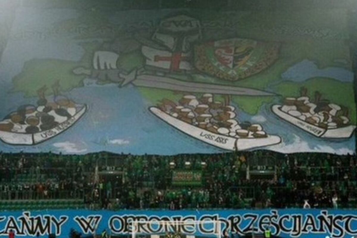 Navijači Slaska iz Vroclava u meču sa Lehom iz Poznanja (1:1) istakli su ogromnu šetalicu uz poruku političke i verske sadržine. Haos u Mančesteru: Poljski huligani napali navijače Sevilje! (VIDEO) Naime, na velikoj šetalici istaknut je vitez templar, koji je mačem zagradio puteve ka Evropi čamcima u kojima su izbeglice. Na barkama pišu skraćenice Islamske države - ISIS uz imena Sadama Huseina i Osame Bin Ladena.