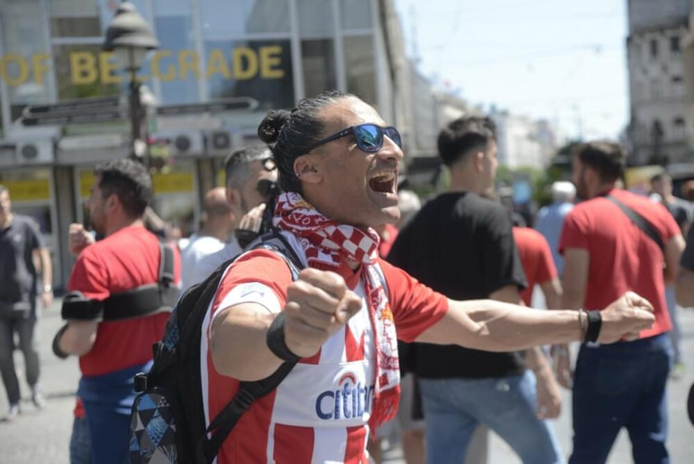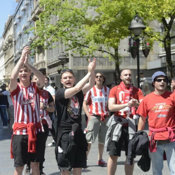 U centru grada, u Knez Mihailovoj, posebno se ističu jer se sve crveni od njihovih majica i dresova i trese od glasne pesme.