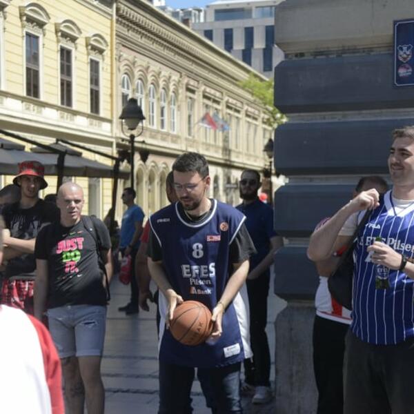 Pridružili su im se i rivali, navijači Efesa, pa ne mogući da čekaju početak duela u Areni (Olimpijakos - Efes 18.30, Real Madrid - Barselona 21.00), oni su zaigrali basket na licu mesta.