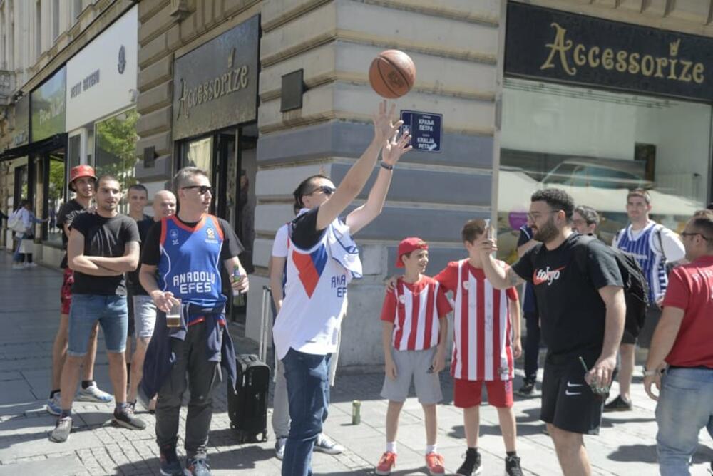 NAVIJAČI "OKUPIRALI" CENTAR BEOGRADA: Grci i Turci ne mogu da čekaju Arenu, igraju basket u Knez Mihailovoj! VIDEO
