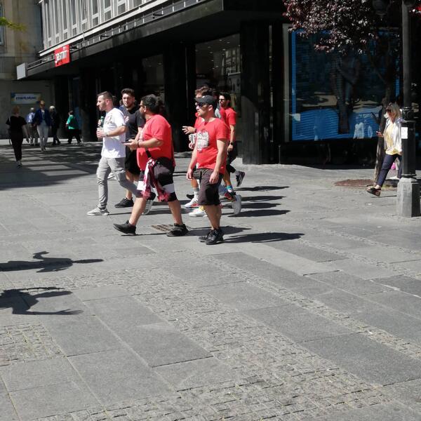 U centru grada posebno se ističu jer se sve crveni od njihovih majica i dresova i trese od glasne pesme