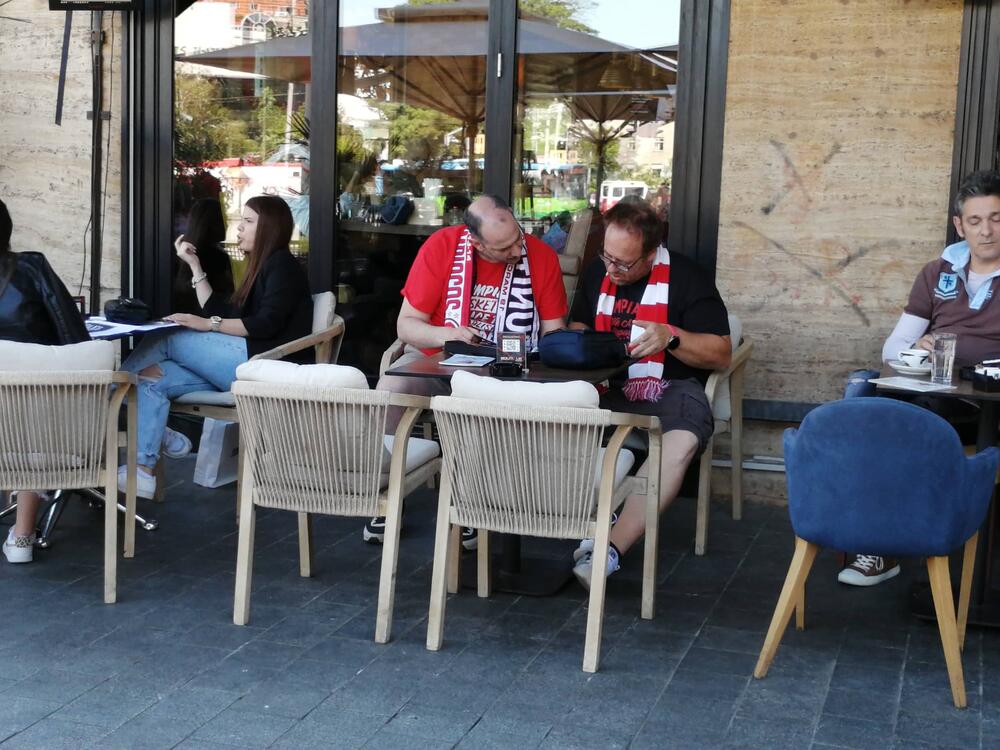 Zanimljivo, u jednom istom kafiću na Oblićevom vencu sede navijači Barselone i Olimpijakosa, ali svako gleda svoja posla...