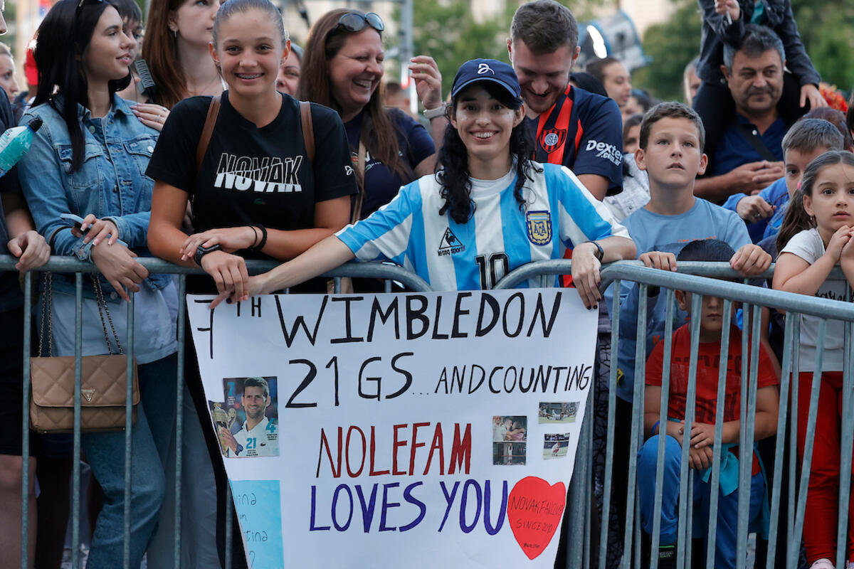 Ispred Starog dvora na čuvenom balkonu večeras je priređen doček Novaka Đokovića posle osvajanja sedme titule na Vimbldonu.