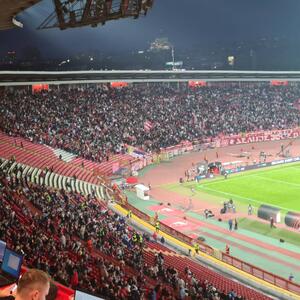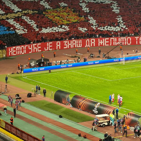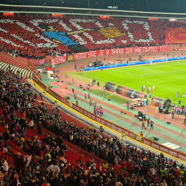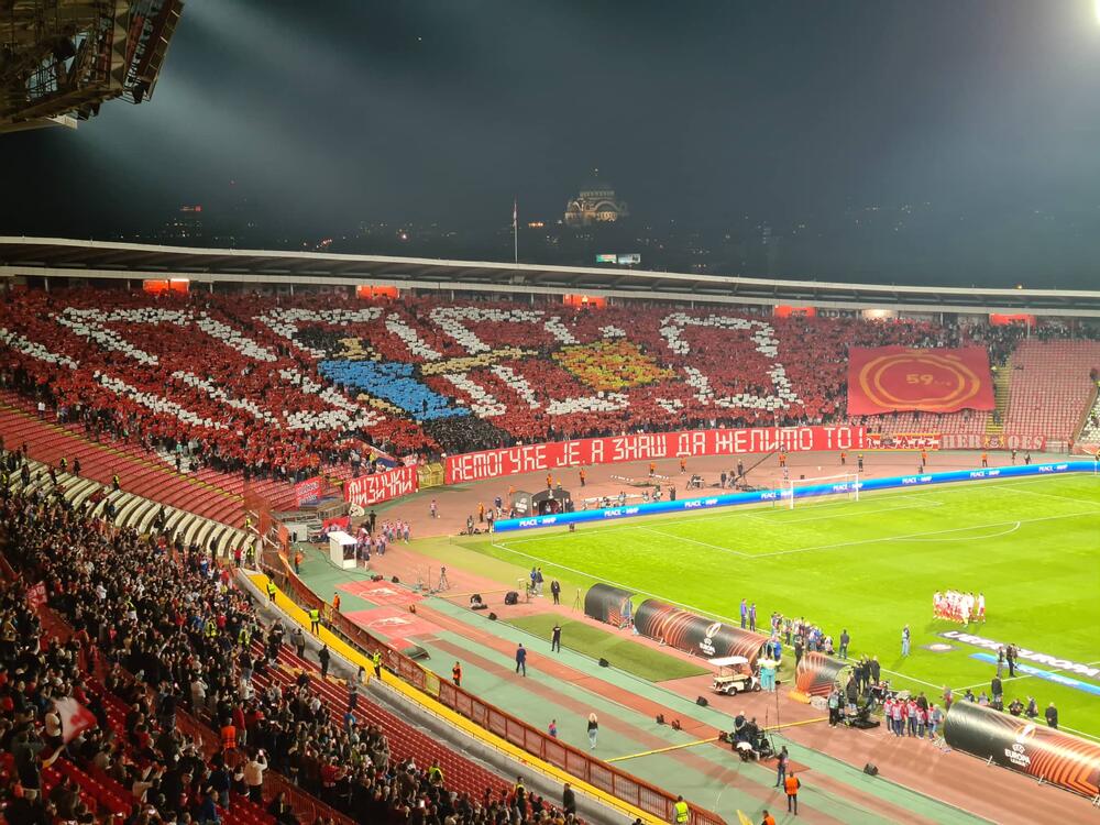 Navijači Crvene zvezde su pred početak utakmice Lige Evrope protiv Ferencvaroša napravili sjajnu koreografiju.