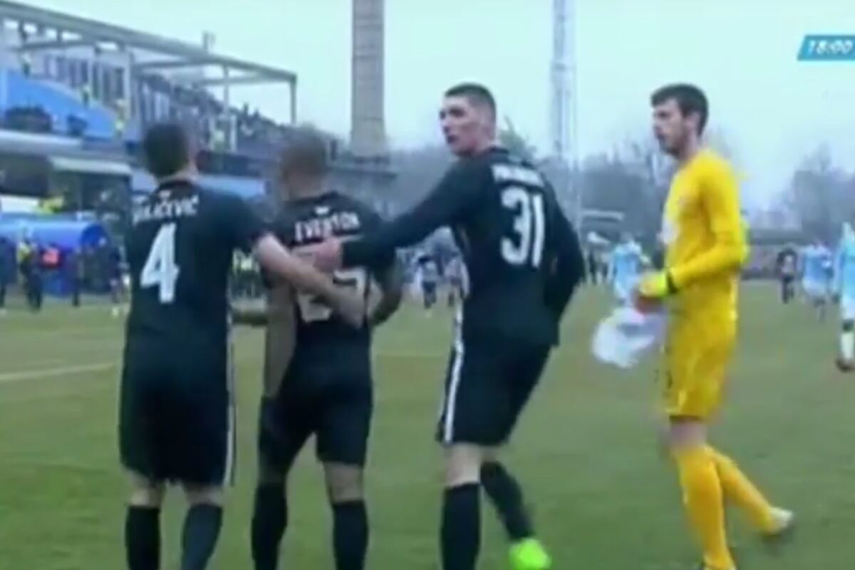 Fudbaleri Partizana nisu mogli odmah da uđu u svlačionicu, stoje u tunelu, a uzrok sukoba bio je transparent i majmunski povici sa tribina.