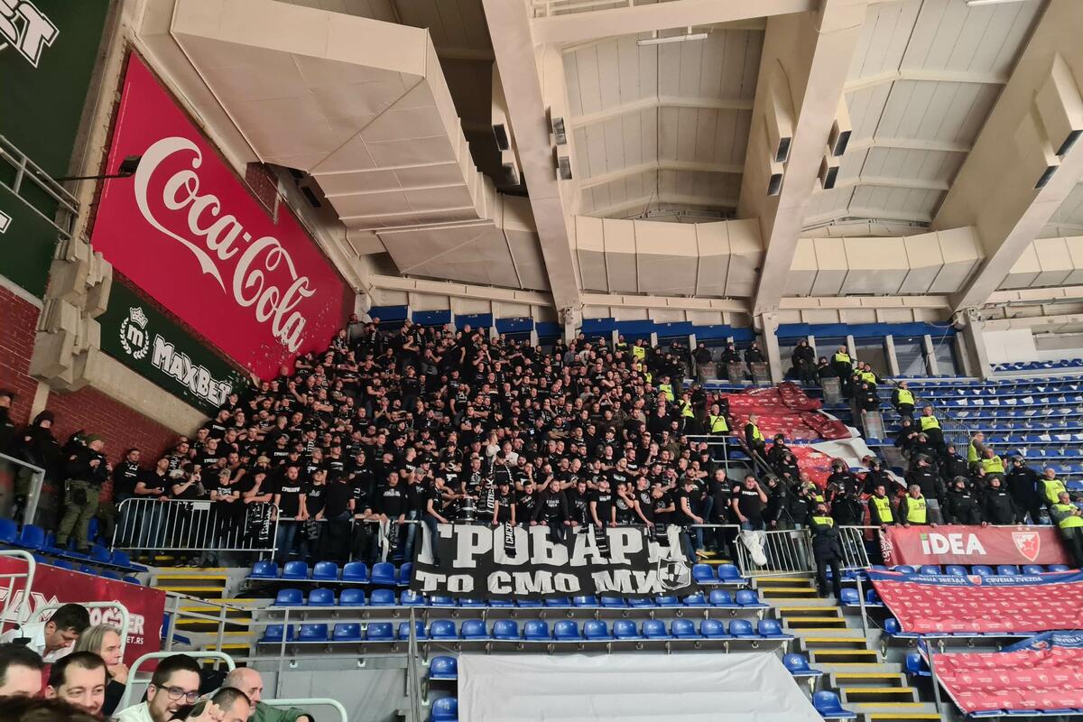 Domaćin je Crvena zvezda, a kao što je bio slučaj na prvom derbiju kada su u Areni bili prisutni navijači Crvene zvezde, tako su i sada navijači Partizana prisutni u hali.