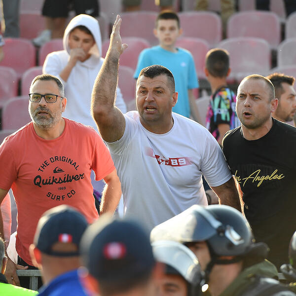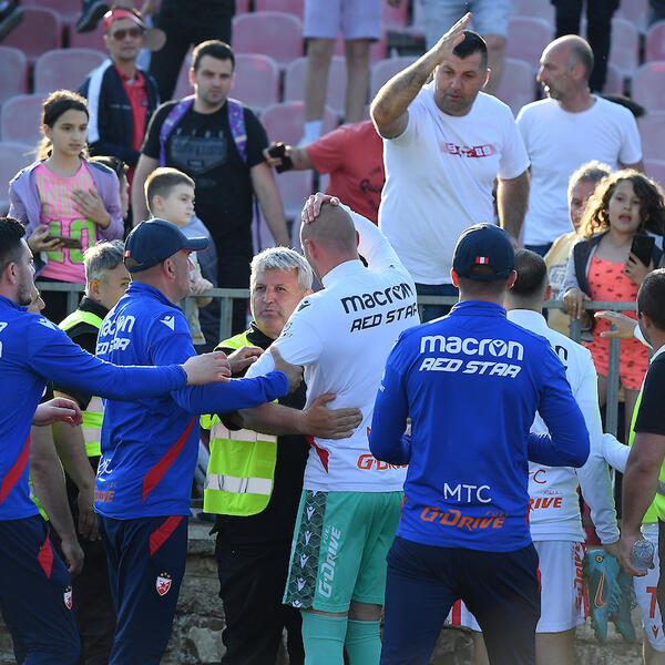 U jednom trenutku, Borjan nije mogao da se smiri i suzdrži, pa je krenuo i da preskače ogradu, ali je na vreme zaustavljen.