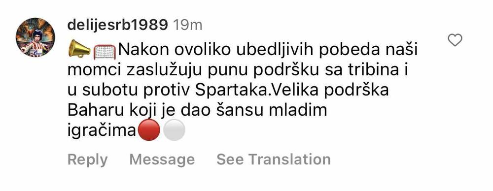 "Zvezdaši, hvala vam na dosadašnjoj podršci koju ste pružali fudbalerima Crvene zvezde kako na domaćem, tako i na gostujućem terenu i nadamo se da će ona biti još veća iz meča u meč! Ipak, i pored odlične igre, velikog broja postignutih golova i direktnog plasmana u Ligu šampiona, na Marakani još uvek nema u proseku više od 20.000 gledalaca na svakom meču Superlige Srbije - poručuju iz Crvene zvezde i dodaju: