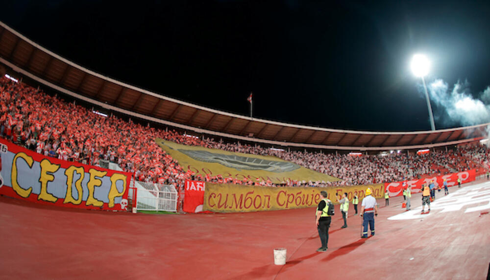 Na severnoj tribini razvučena je šetalica sa Marakanom na početku drugog poluvremena, a sve je ispraćeno fenomenalnim vatrometom