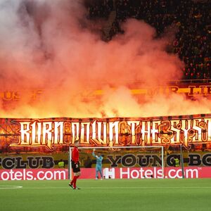 Glavni sudija Serdar Gezubujuk prekinuo je meč zbog ubacivanja baklji na teren od strane navijača domaćina, a haos se nastavio i oko stadiona.
