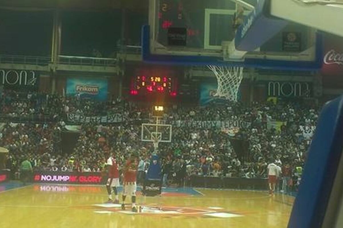 Navijači Crvene zvezde na poluvremenu su razvili transparent