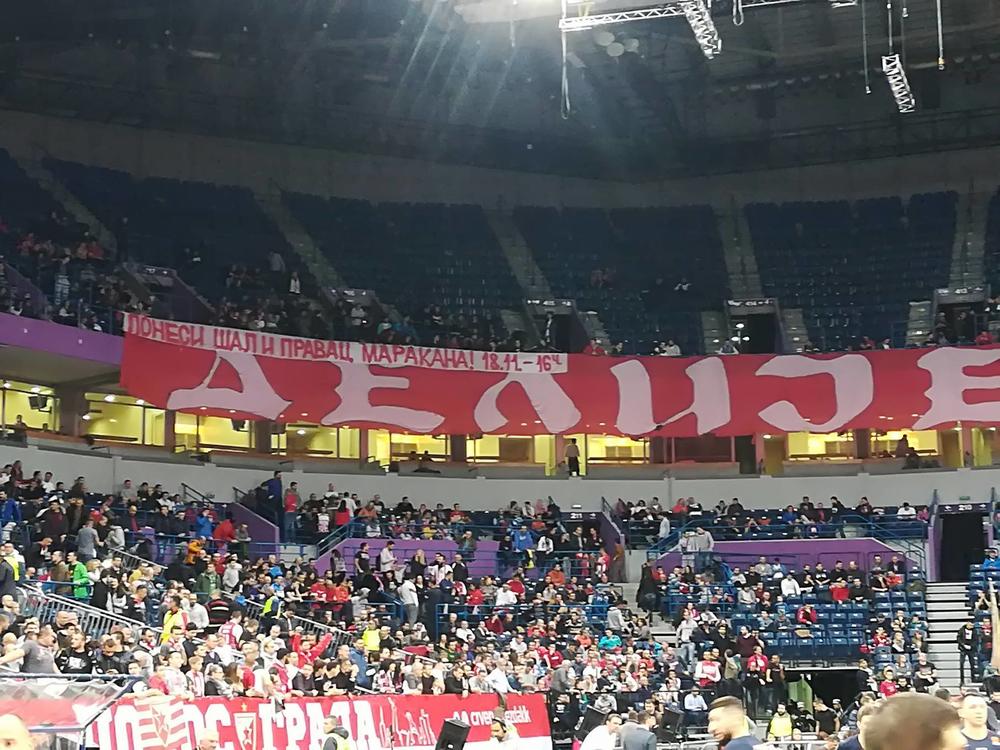 U međuvremenu, na drugom kraju Srbije, u Beogradu, na tribinama Beogradske arene viđen je isti transparent.