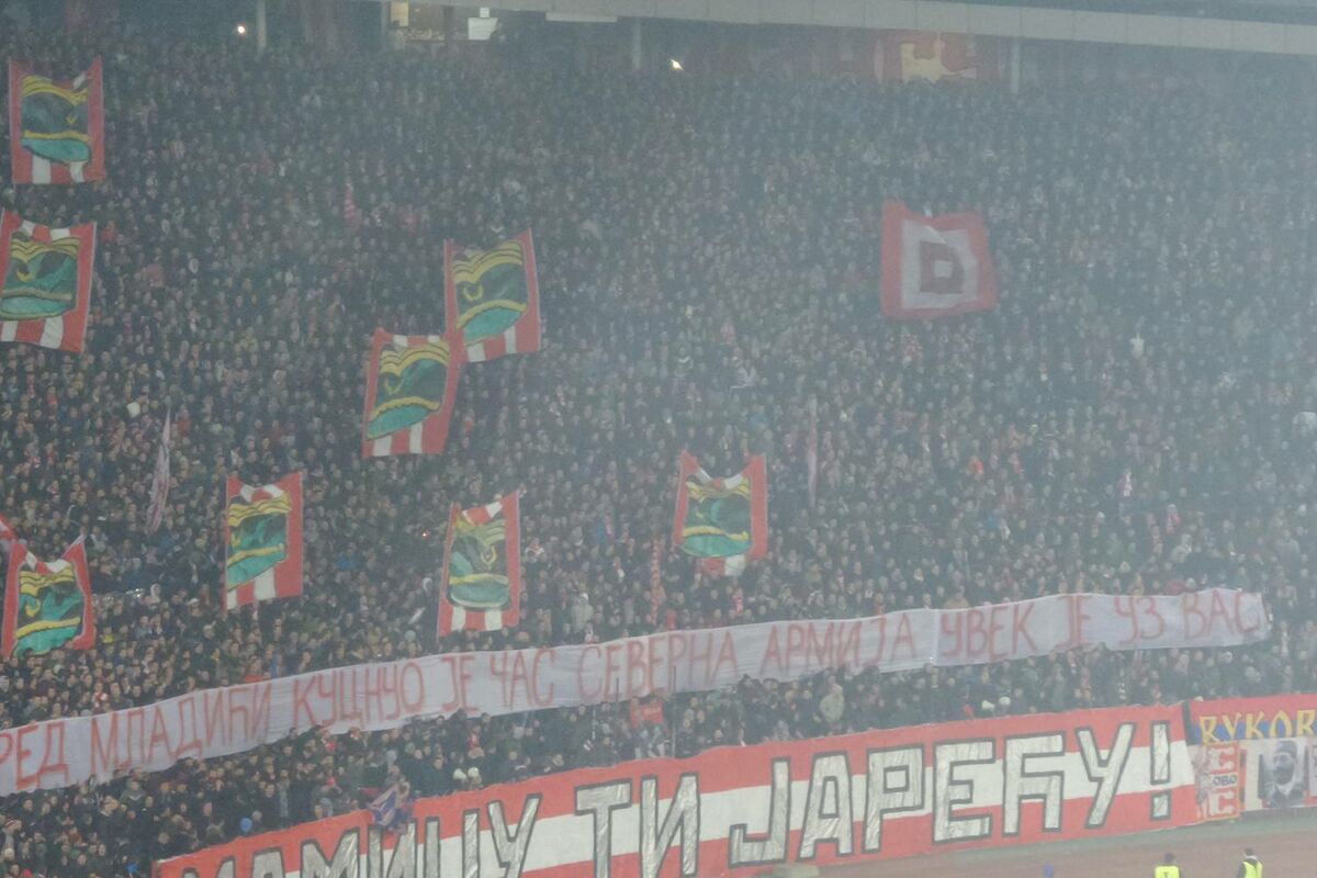 Na početku drugog poluvremena utakmice Crvene zvezde i Kelna istaknuta je nova koreografija Delija.