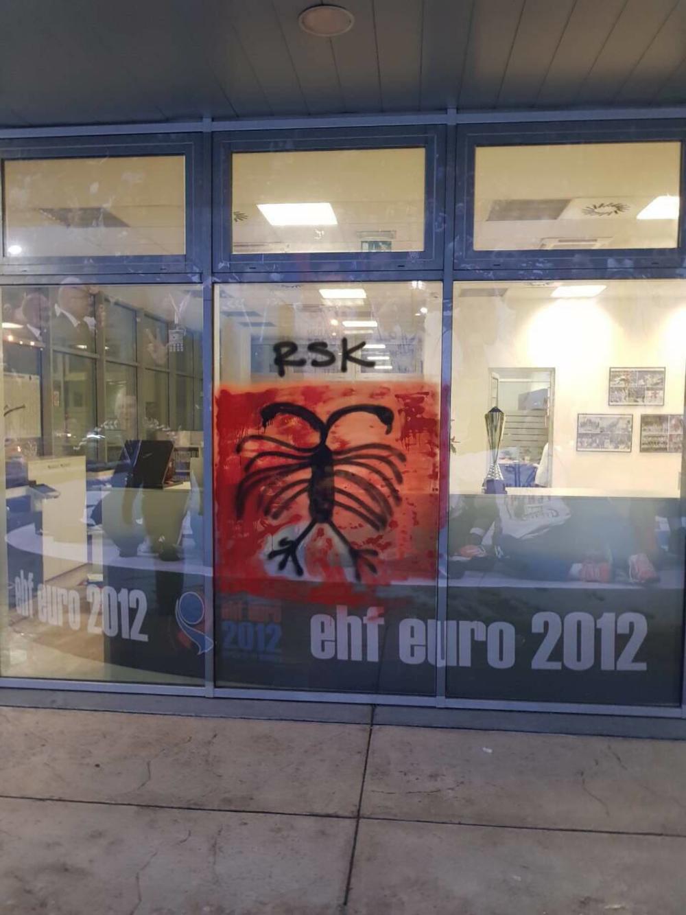 Huliganski napad na RSS! Veliki albanski crni orao naslikan, prostorije zakatančene! (FOTO)