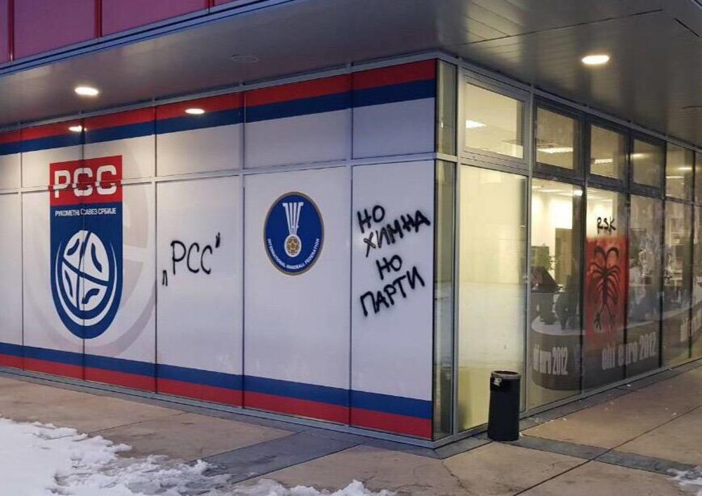 Na meti huligana bile su prostorije RSS, koje su ižvrljane grafitima, a prostorije su zakatančene.