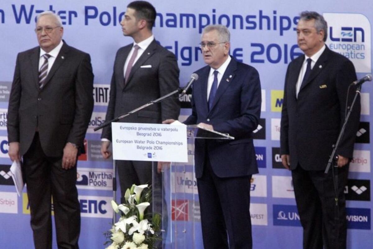 Vaterpolo spektakl u beogradskoj "Kombank areni" na otvaranju Evropskog prvenstva okupilo je rekordnih 11.000 gledalaca! U Beogradu oboren rekord EP: 11.000 navijača bilo je u Areni! U premijernom meču, reprezentacija Srbije deklasirala je Hrvatsku, sa 13:6, a pre ceremonije otvaranja trubači su oko 30 minuta zabavljali gledaoce. Srbija ponizila Hrvatsku u Areni: Delfini očitali lekciju olimpijskom šampionu! (FOTO) (VIDEO) Zvuke trube ubrzo su zemenili zvižduci... Vijorila se ogromna trobojka dok je Arenom odjekivalo Bože pravde! (VIDEO) Kada je krenuo defile zastava učesnika šampionata, prvo je izviždana Hrvatska, koja je išla prva po redu. Navijači su zviždali i zastavama Crne Gore i Mađarske, dok je ovacije i aplauze dobila Rusija.