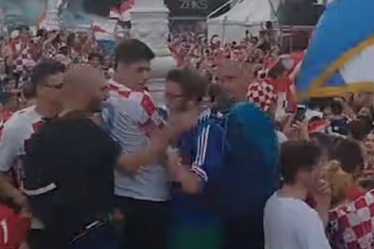 Kada se meč završio ovaj hrabri (ludi) Francuz se popeo na jednu banderu i počeo da slavi. To je razbesnelo navijače Hrvatske koji su rešili da preuzmu stvari u svoje ruke.