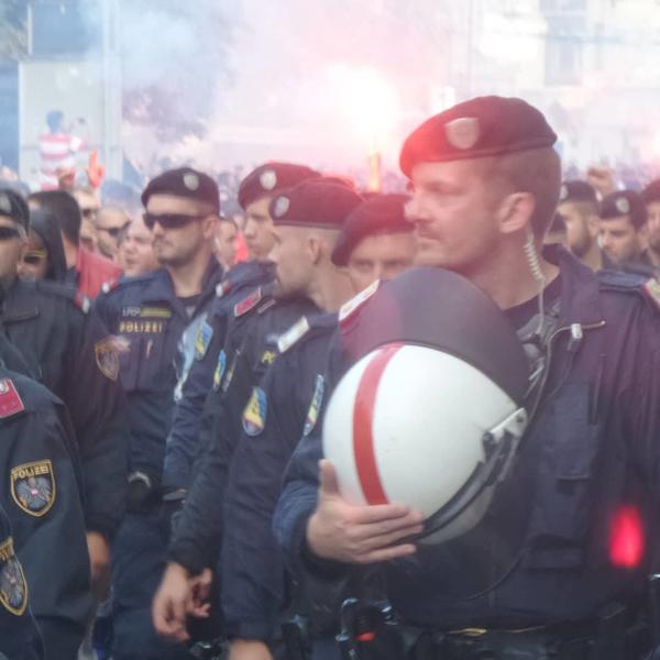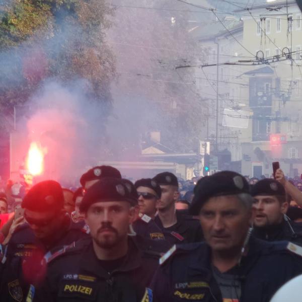 A onda se ista ekipa policajaca koja je utvrđivala pravila ponašanja sa "Delijama", ponovo prišla vođama u nameri da organizuju korteo i utvrede pravila još jednom, pa je kada je to obavljeno, reka "Delija je krenula ulicama Salcburga ka finalnom odredištu.