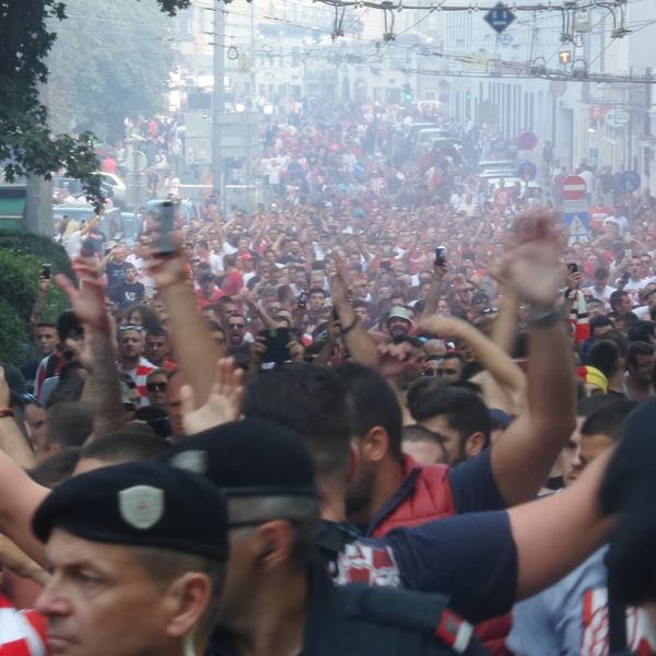 U Salcburgu se bližio trenutak kada su "Delije" sa mesta okupljanja krenule ka glavnom odredištu, Red Bull areni.