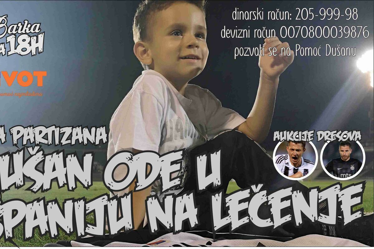 Za njega je potrebno skupiti 200.000 evra kako bi otišao na lečenje u Španiju, a humanitarna akcija je odjeknula kada je održana aukcija dresova igrača Partizana na kojoj su neki od fudbalera licitirali za dresove i tom prilikom skupili oko 700.000 dinara što na žalost još uvek nije dovoljno.