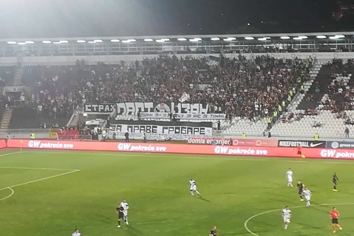 Frakcija navijača Partizana pod imenom Partizanovci, a koju predvodi Miloš Radisavljević Kimi imala je transparent sa porukom Delijama i to povodom ubistva Demira Jukića.