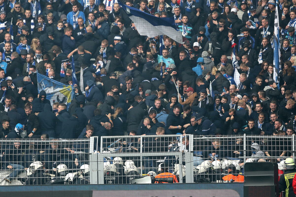 U Nemačkoj se to ne toleriše, pa je policija oduzela transparente gostujućim navijačima, koji su preskočili ogradu i krenuli u sukob sa organima reda. Huligani su policajce tukli i barjacima, a na kraju, policija je morala da upotrebi suzavac.