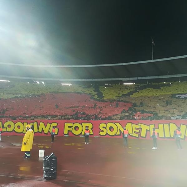 Delije su kao i uvek bile na visini zadatka i na početku meča protiv "svetaca" istakle spektakularnu koreografiju preko sve četiri tribine stadiona "Rajko Mitić".