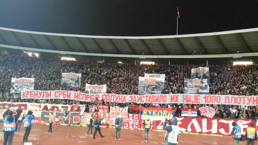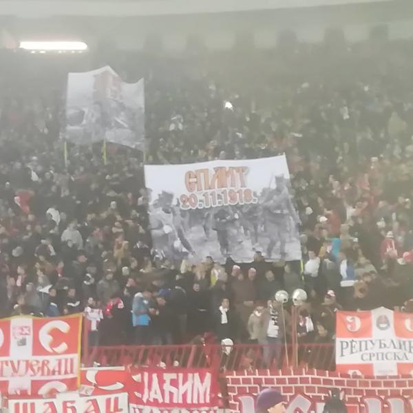 Navijači Crvene zvezde su, osim žestoke poruke Francuzima da su zaboravili kako su njihovi preci ginuli zajedno sa Srbima za slobodu, na pauzi između dva poluvremena podsetile kako su to naši junački oci oslobađali Balkan 1918. godine.