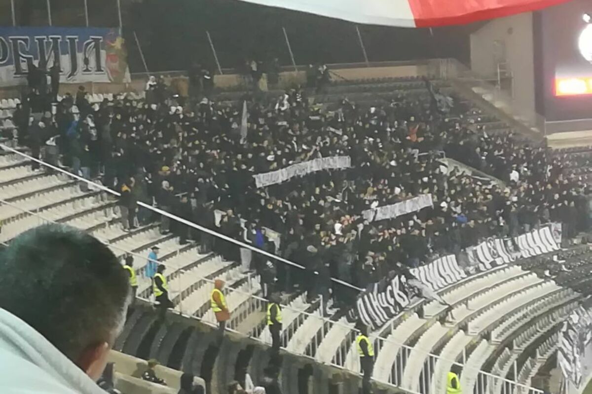 Nastavljaju Grobari okupljeni na južnoj tribini da "ratuju" sa aktuelnom upravom fudbalskog kluba Partizan.