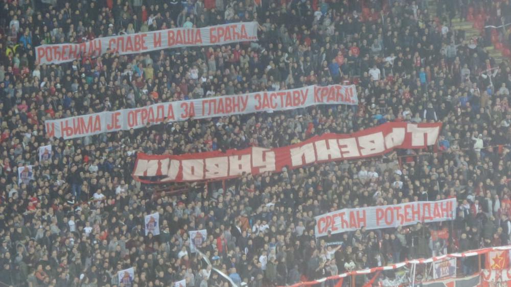 - Rođendan slave i vaša braća, njima je ograda za glavnu zastavu kraća. Srećan rođendan - napisali su, a ispod toga istakli zastavu Crvenih đavola, skinutu 2017. godine, kada su se Delije prerušile u rukometaše i skinuli je sa tribina fudbalskog stadiona Čika Dača.