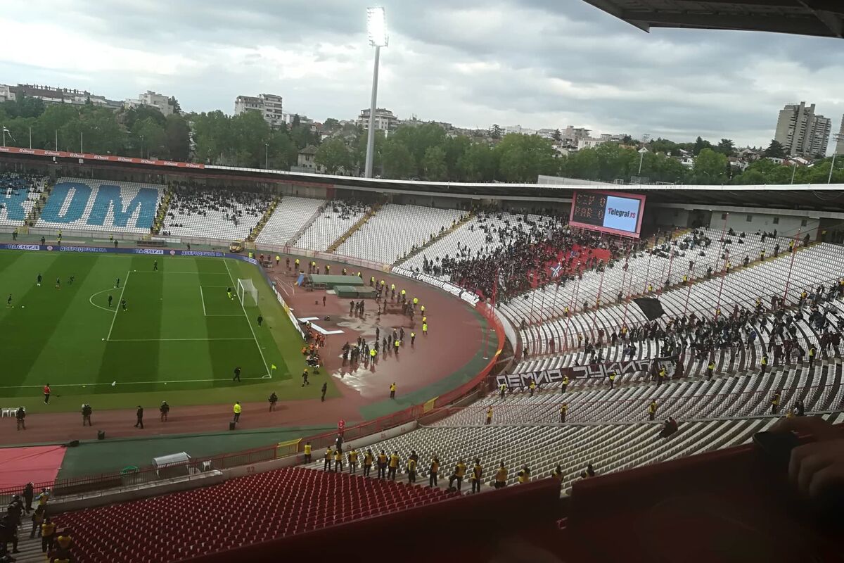 Tri zaraćene frakcije Grobara (Grobari jug, Partizanovci Miloša Radisavljevića Kimija i Zabranjeni) ponovo su podeljeni tampon zonama kao i na svakoj utakmici.