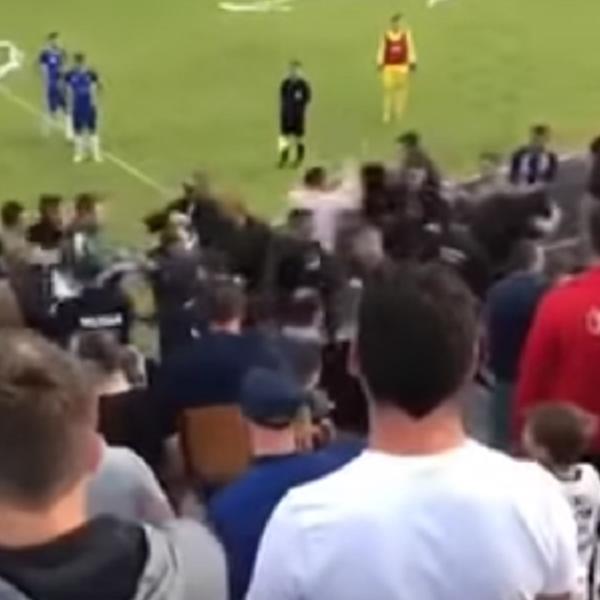 Odjednom se pojavila španska policija. Sa pendrecima u rukama uleteli su među navijače. Problem je nastao kada je jedan policajac počeo da udara pendrekom navijača jer je bio pivo na ulici.