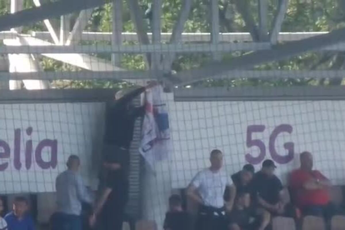 Poseban trenutak prilikom ulaska na tribinu dogodio se kada je jedan Delija odmah okačio zastavu sa granicama Kosova i Metohije preko koje je srpska trobojka i na kojoj piše "Nema predaje".