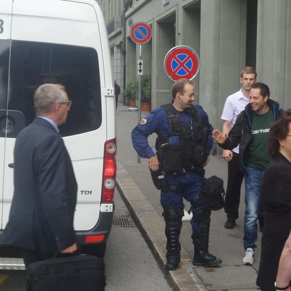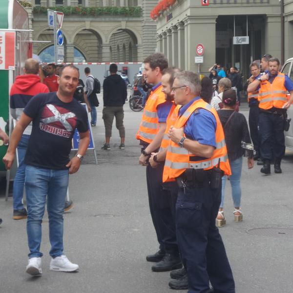 Pored navijča, na ulicama Berna se nalazi i veliki broj organa reda, koji su tu da bi sve prošlo u najboljem redu i da ne bi došlo do nereda.